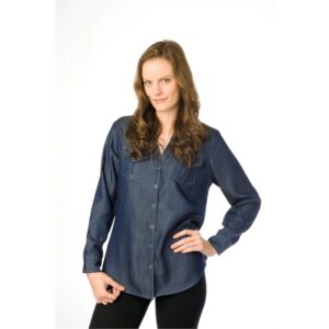 Blank. Ladies’ denim western shirt made of 100% cotton denim. Featuring a full snap placket with snap cuffs and two