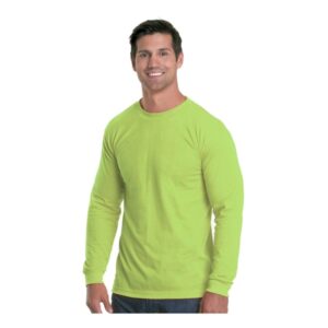 Bayside USA-Made Performance Long Sleeve T-Shirt ul)4.5 oz./yd2, 100% polyester. Shoulder-to-shoulder tape. Two needle sleeve and bottom hem.