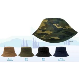 Camouflage bucket hat made of 100% cotton. One size fits all. Imported.