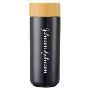 15oz Two tone tea and coffee ceramic mug with wood lid. Groove on top for holding tea bags.