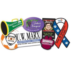 Choose your size and shape. Durable, flexible, magnetized vinyl. Vibrant Outdoor Durable screen printing. White flexible magnetized vinyl, approximately 0.030″