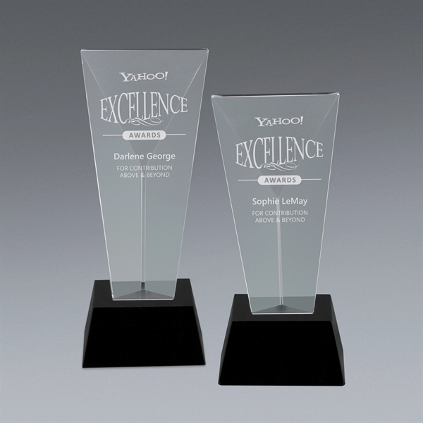 Make your motives crystal clear at the next employee recognition ceremony with this eye-catching award! Made of clear crystal, this upright award features a black base and you can customize the product with an etched imprint to showcase your company name, logo and winner’s name. Create a lasting keepsake that will be treasured for years to come. Let us help you promote company-wide excellence!