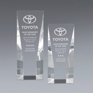 The Stacked Pyramid takes the pyramid shape to the next level. The Stacked Pyramid allows multi-levels of design and text, creating a truly unique award or trophy.