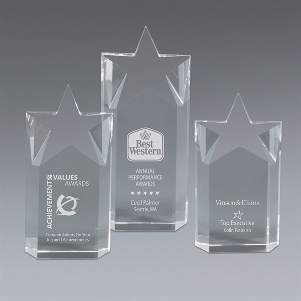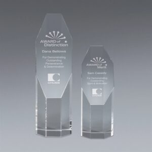 Remind exceptional employees or customers that their value and contributions to your company are astronomical with the Star Tower award. The clear crystal base and the crystal star tower upright award is available in three sizes and features an etched imprint of choosing. This is an ideal gift for a company award or a prize in any business related contest. Welcome the deserving recipient to the winner’s circle with this amazing award!